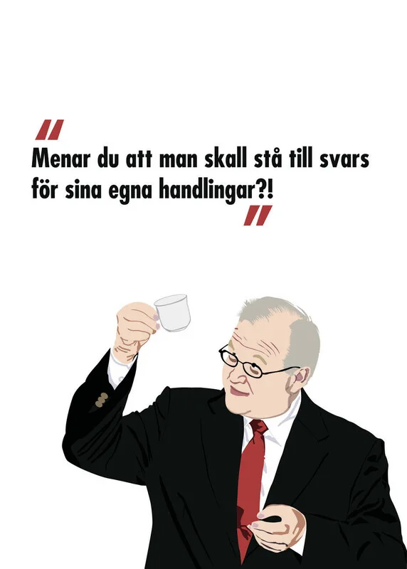 Samolepka Göran Persson Den som är satt i skuld är icke fri
