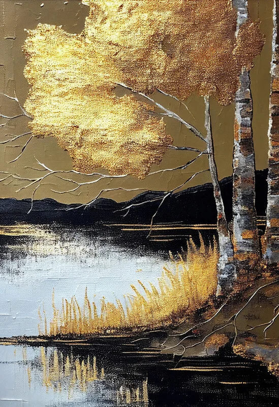 Obraz na plátně Golden birch tree at the lake