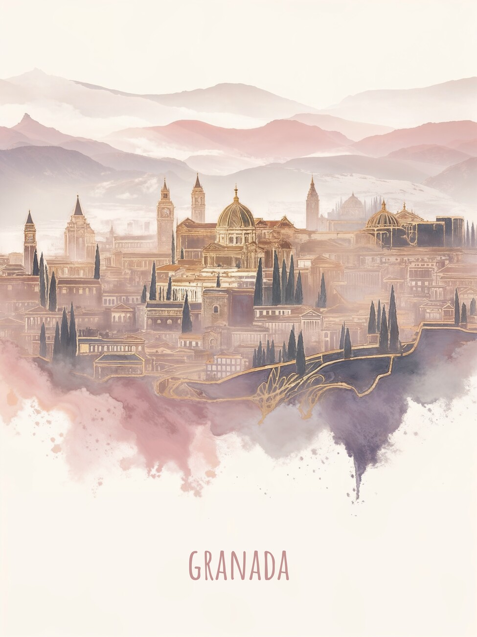 Plakát Granada Abstract Modern City Sketch