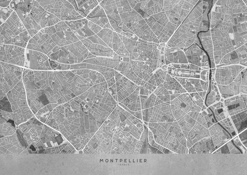 Obraz na plátně Gray vintage map of Montpellier(France)