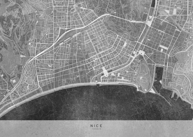 Obraz na plátně Gray vintage map of Nice downtown (France)