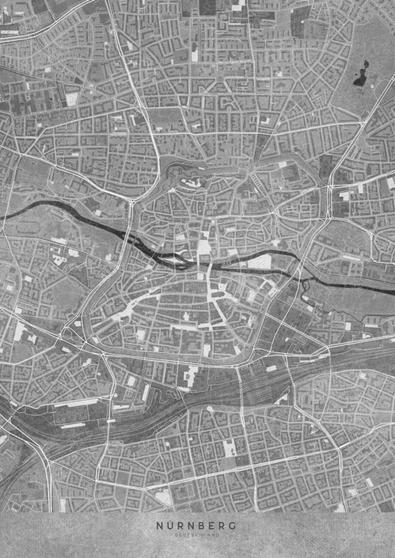 Samolepka Gray vintage map of Nürnberg Nuremberg downtown