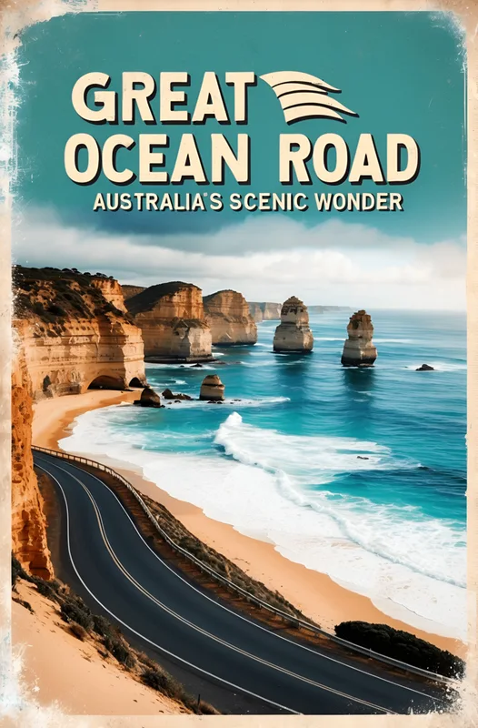 Obraz na plátně Great Ocean Road Vintage Travel Poster – Australia’s Scenic