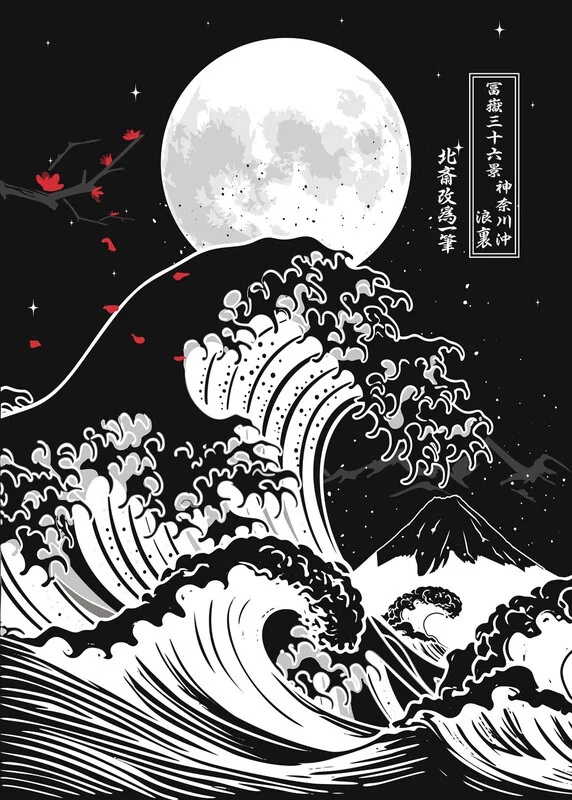 Samolepka Great Wave off Kanagawa - Moonlight Edition