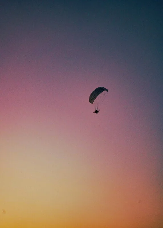 Obraz na plátně Hangglider over pink sunset in italy hang glider