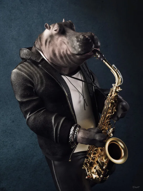 Obraz na plátně Hippopotamus portrait vintage animals renaissance