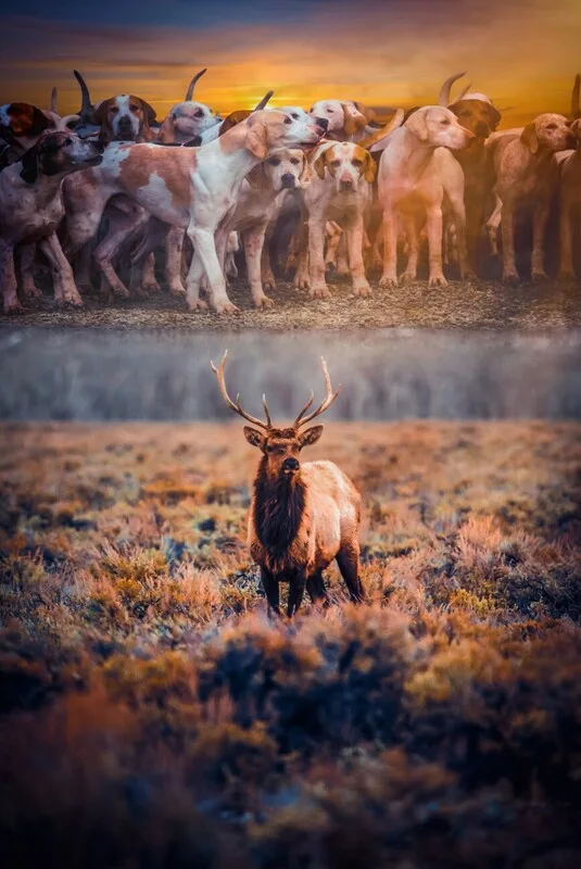 Plakát Hunting dogs and deer wild life