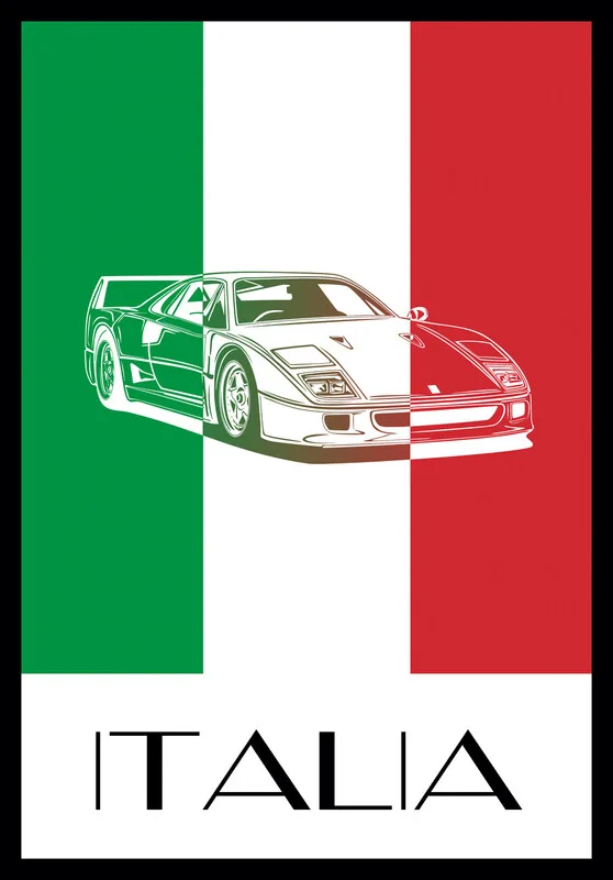 Samolepka ITALIA - Bandiera Italiana e auto sportiva