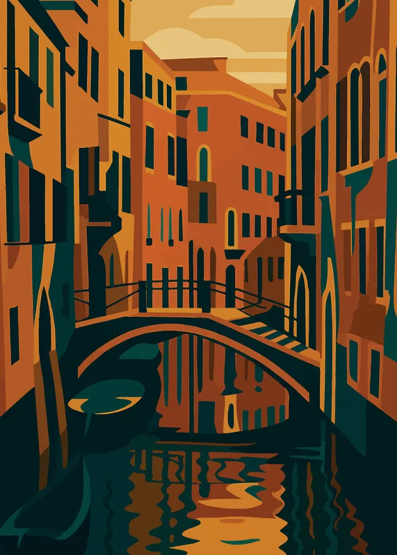 Obraz na plátně Italy - Art Deco Venice Canal at Sunset - retro