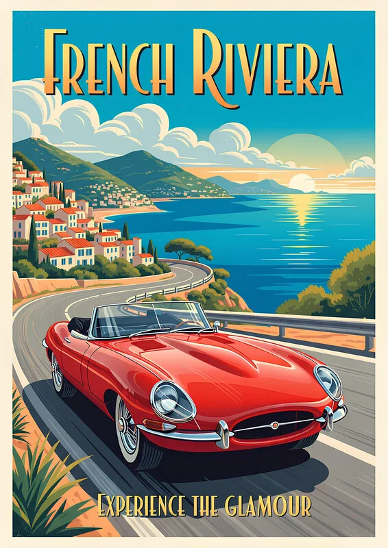 Plakát Jaguar E-Type - Red Convertible on French Riviera