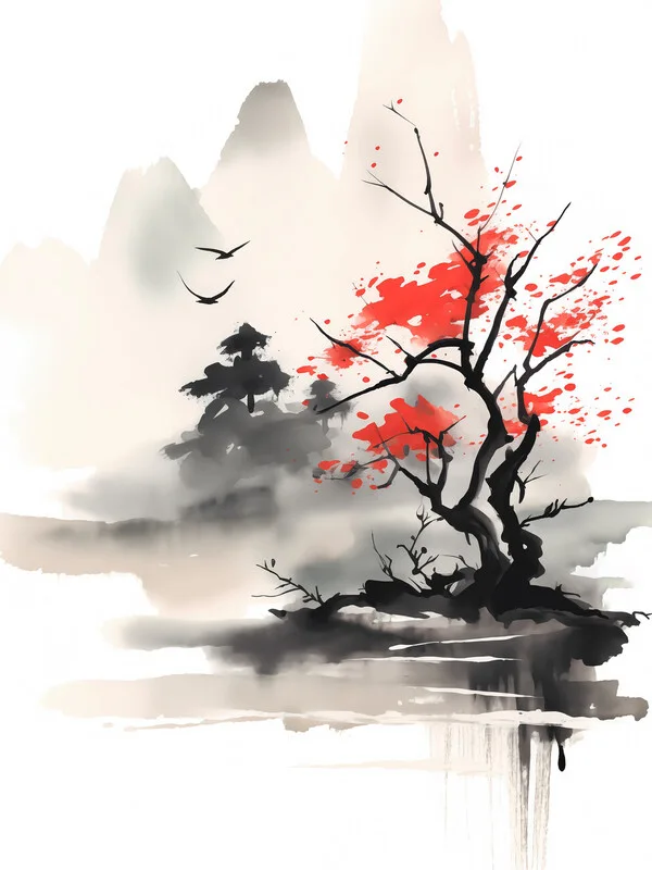 Samolepka Japanese Landscape Sumi-e Art