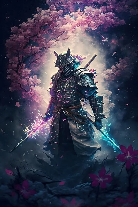 Obraz na plátně Japanese Samurai in Cherry Blossom Trees