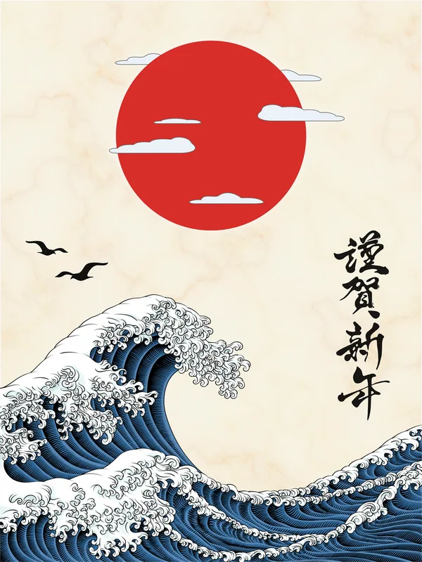 Plakát Japanese Wave Birds and Red Sun Modern Art Mid Century