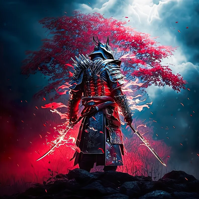 Plakát Japanese with red Swords