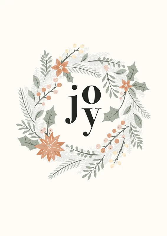 Obraz na plátně Joy, Christmas Wreath, holiday illustration