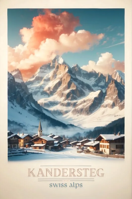 Plakát Kandersteg Vintage Travel Poster - Swiss Alps Art