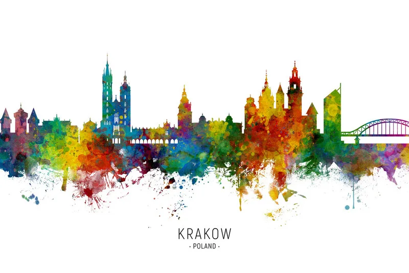 Plakát Krakow Poland Skyline Cityscape Painting Watercolor