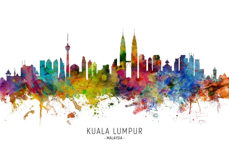 Plakát Kuala Lumpur Malaysia Skyline Cityscape Painting Watercolor