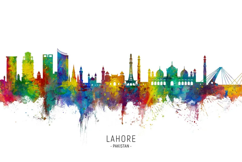 Plakát Lahore Pakistan Skyline Cityscape Painting Watercolor