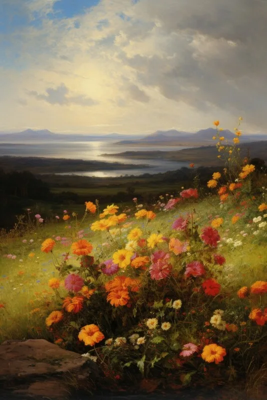 Obraz na plátně Lakeside Floral Sunrise Vibrant View