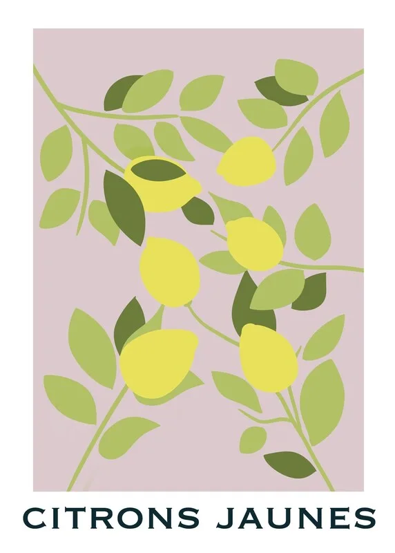 Obraz na plátně Lemon tree modern wall art pink and yellow poster