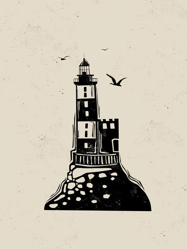 Samolepka Lighthouse Linocut Style
