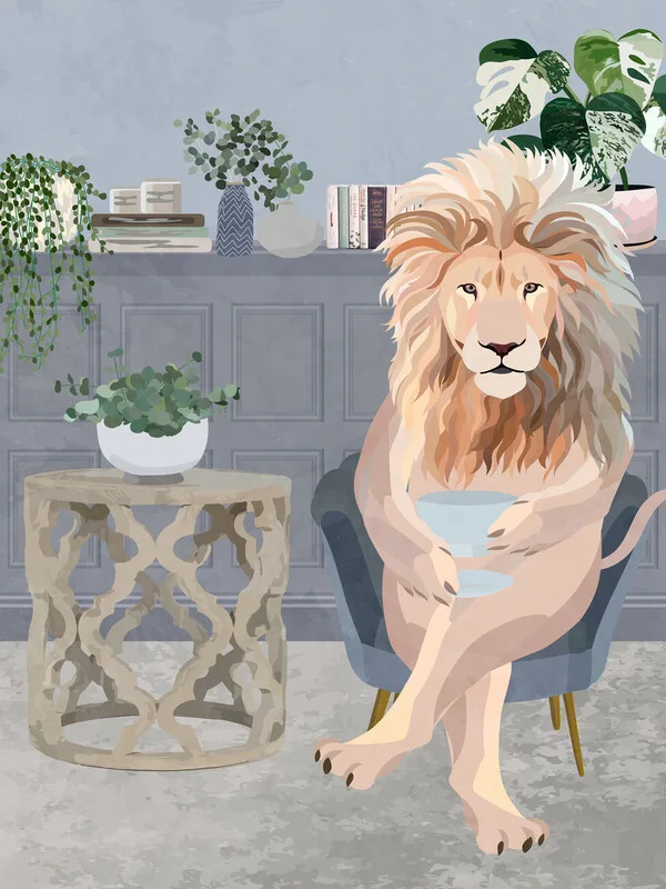 Samolepka Lion drinking tea