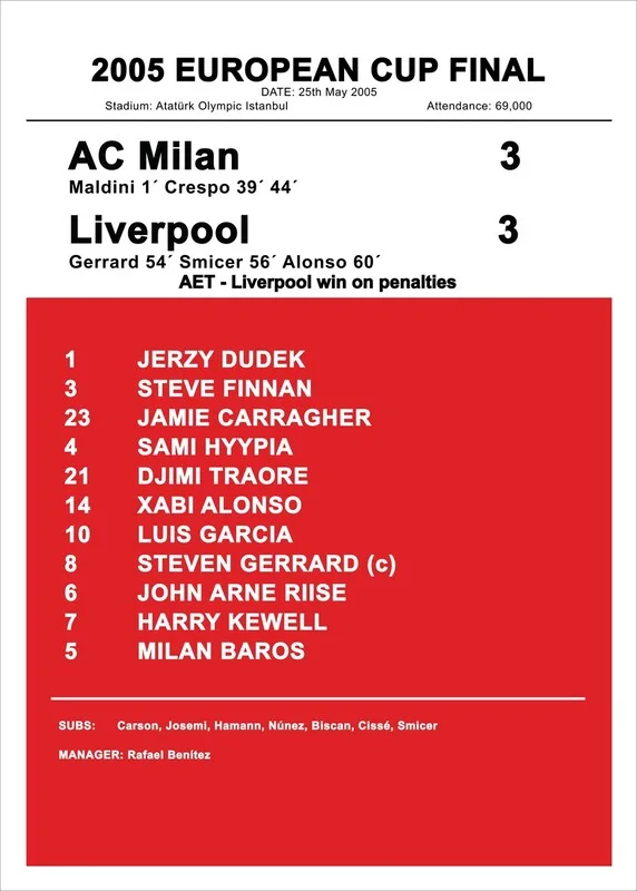 Liverpool Football 2005 game final from Istanbul vs Milan!