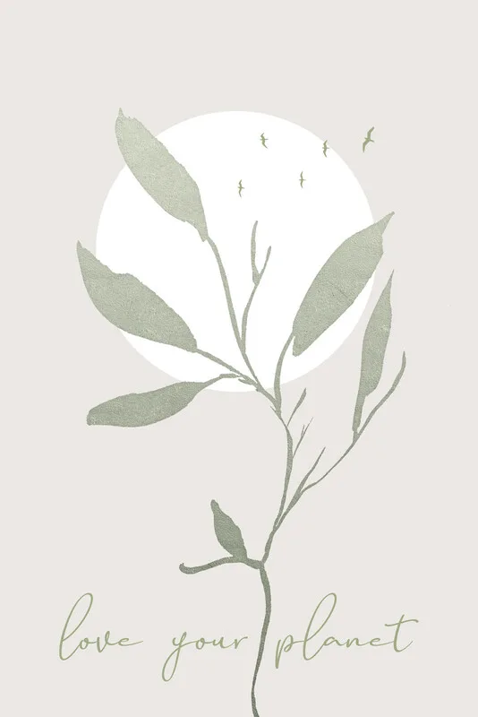 Modern minimalist graphic art with an environmental conscious statement. LOVE YOUR PLANET.