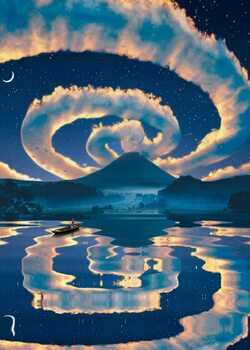 Magic Clouds in starry night reflection