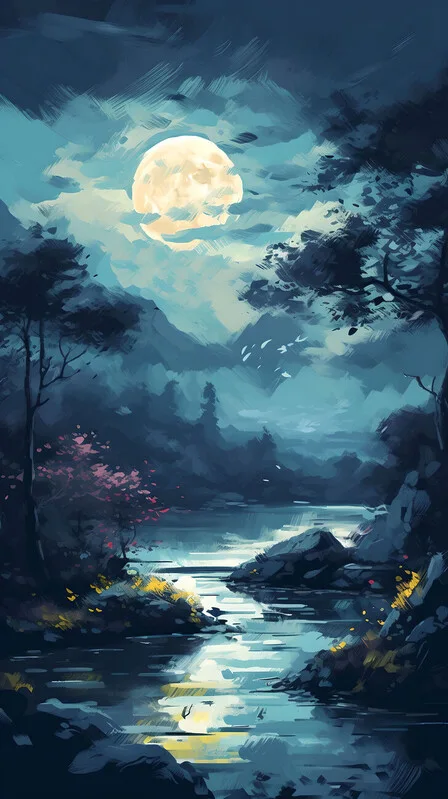 Obraz na plátně Magical Moonlit Forest - Enchanting Nighttime Fantasy Scene