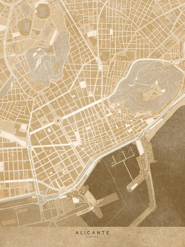 Obraz na plátně Map of alicante downtown (Spain) in sepia vintage style