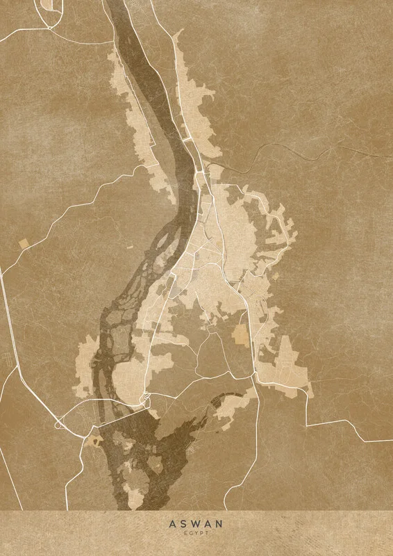 Obraz na plátně Map of Aswan (Egypt) in sepia vintage style