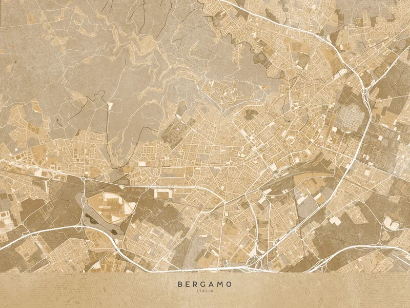 Obraz na plátně Map of Bergamo (Italy) in sepia vintage style