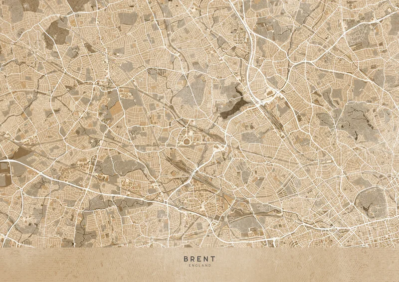 Samolepka Map of Brent (England) in sepia vintage style