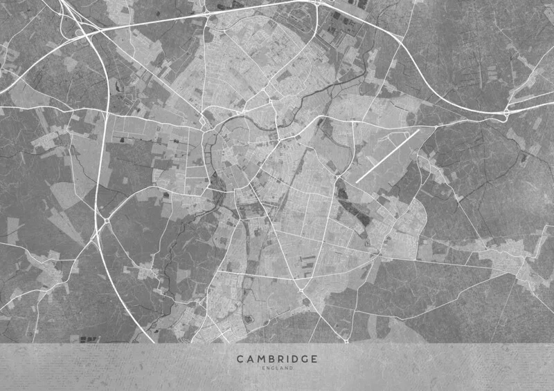 Obraz na plátně Map of Cambridge (England) in gray vintage style