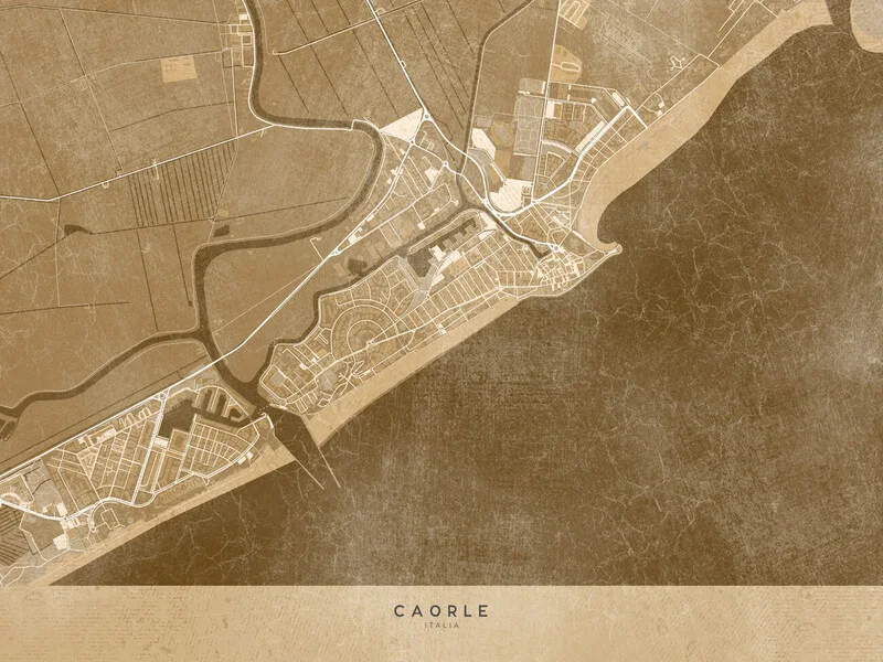 Obraz na plátně Map of Caorle (Italy) in sepia vintage style