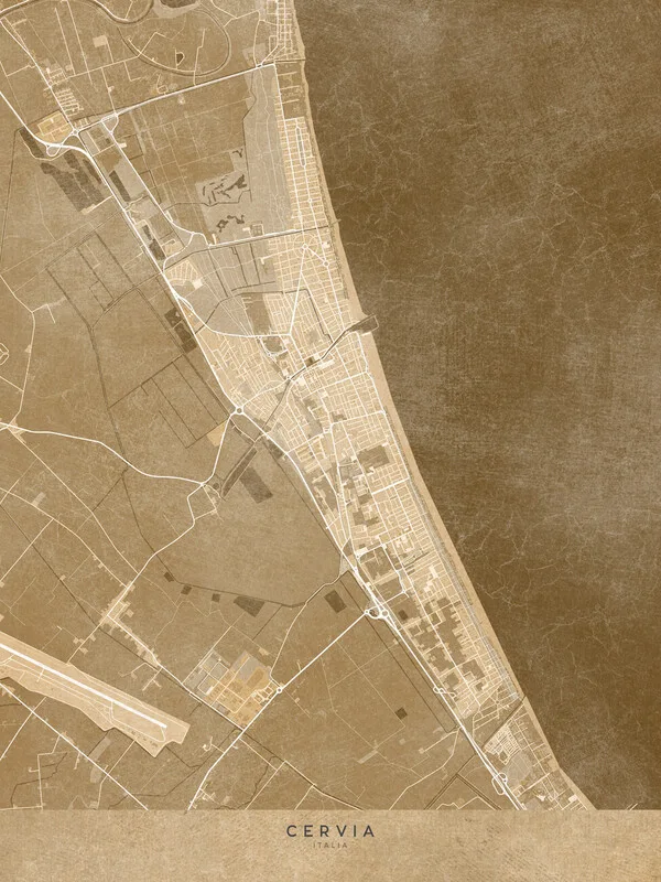 Plakát Map of Cervia - Amalfi coast - (Italy) in sepia