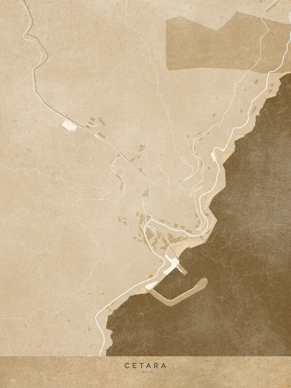 Plakát Map of Cetara - Amalfi coast - (Italy) in sepia