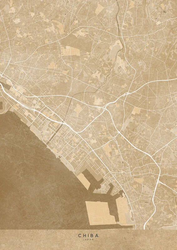 Samolepka Map of Chiba (Japan) in sepia vintage style