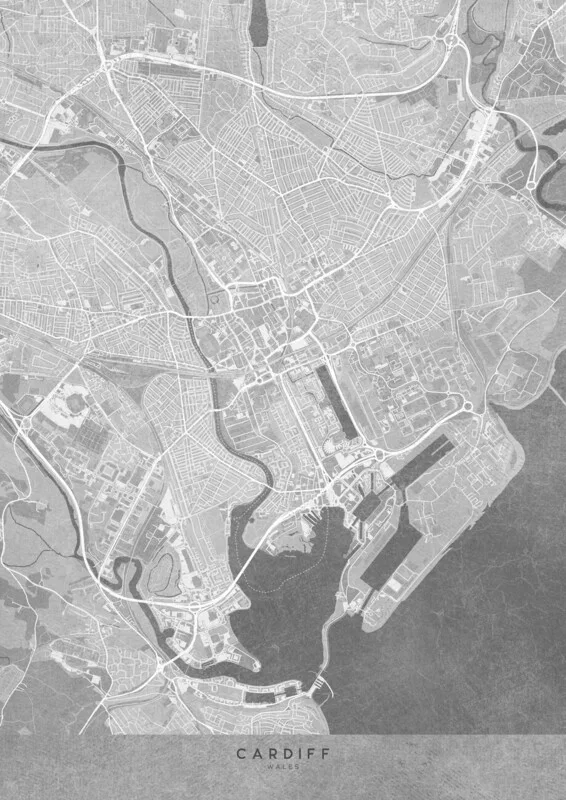 Plakát Map of City of Cardiff (Wales) in gray vintage style