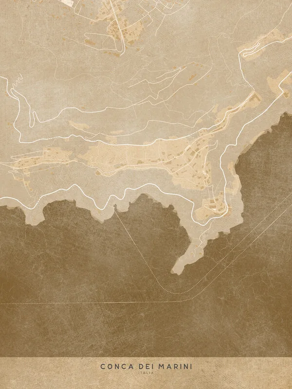 Obraz na plátně Map of Conca dei Marini - Amalfi coast - (Italy) in sepia