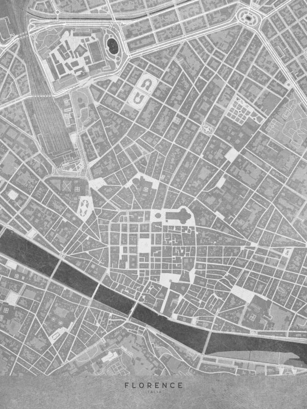Plakát Map of Florence downtown (Italy) in gray vintage style