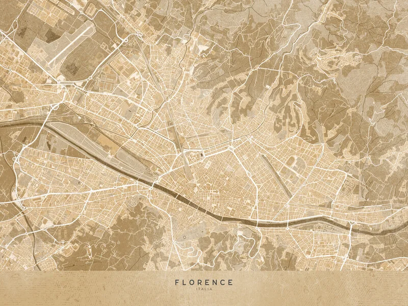 Samolepka Map of Florence (Italy) in sepia vintage style