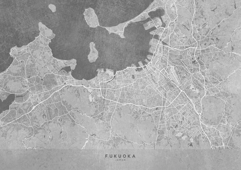 Plakát Map of Fukuoka (Japan) in gray vintage style