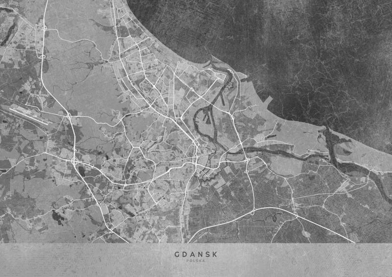Obraz na plátně Map of Gdansk Poland in gray vintage style