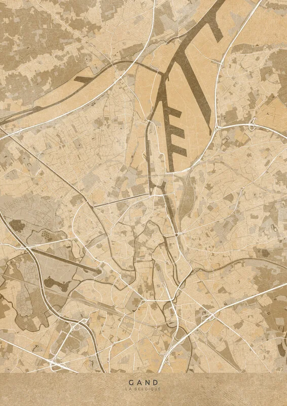 Samolepka Map of Ghent (Belgium) in sepia vintage style