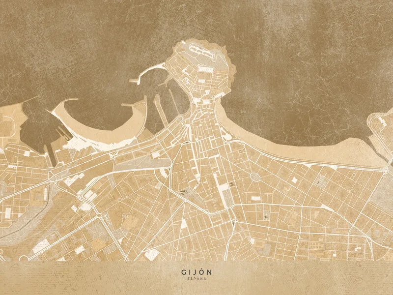 Plakát Map of Gijón downtown (Spain) in sepia vintage style