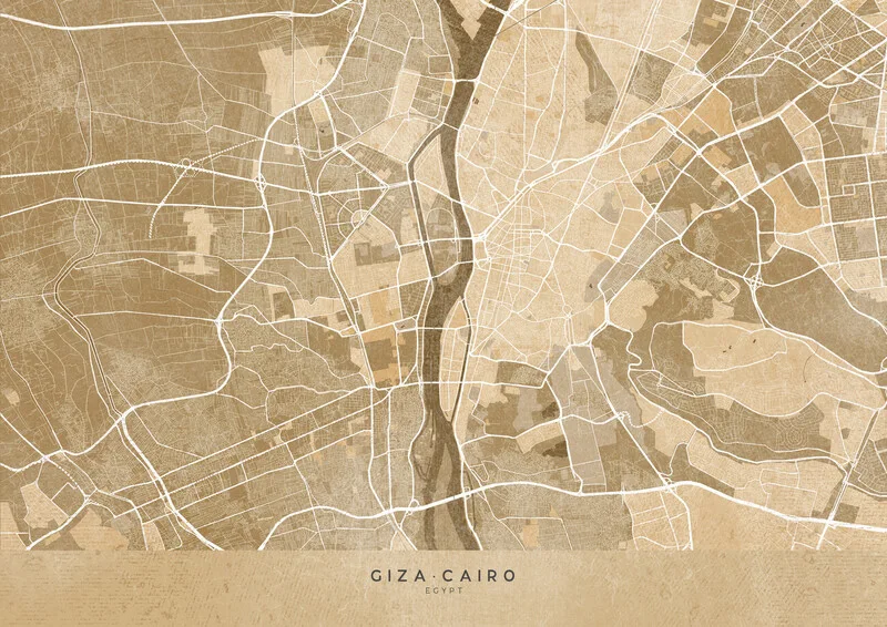 Samolepka Map of Giza & Cairo (Egypt) in sepia vintage style