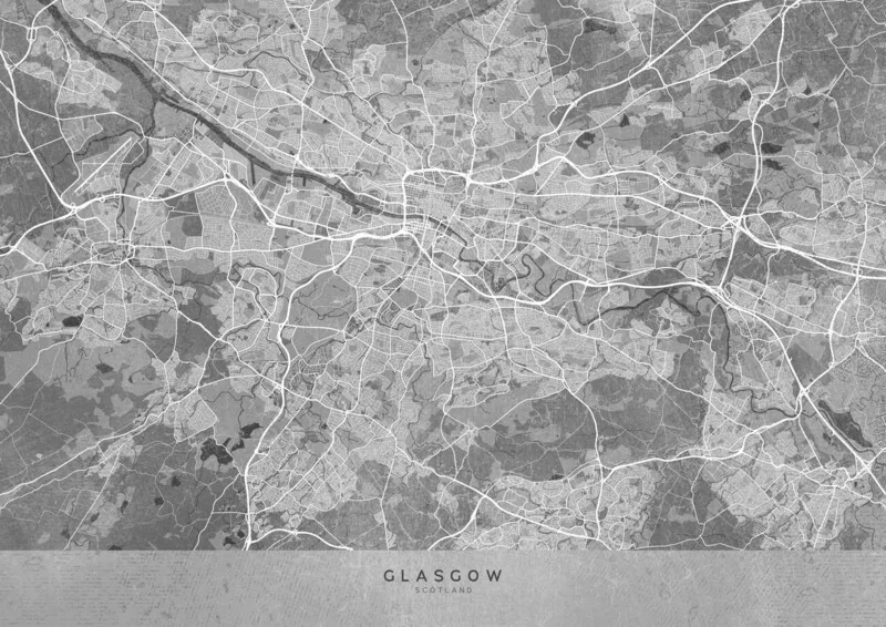 Plakát Map of Glasgow (Scotland) in gray vintage style